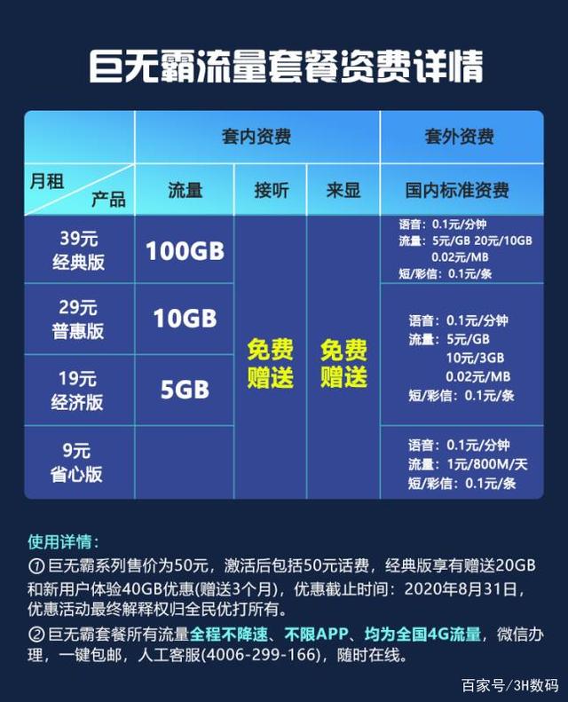 目前来说,巨无霸系列流量多,资费少,性价比高。还有很多套餐都打出过不限量的称号,但实则套路满满,大家选择的时候也要注意。你目前使用的流量卡是哪家?性价比如何?欢迎留言讨论。